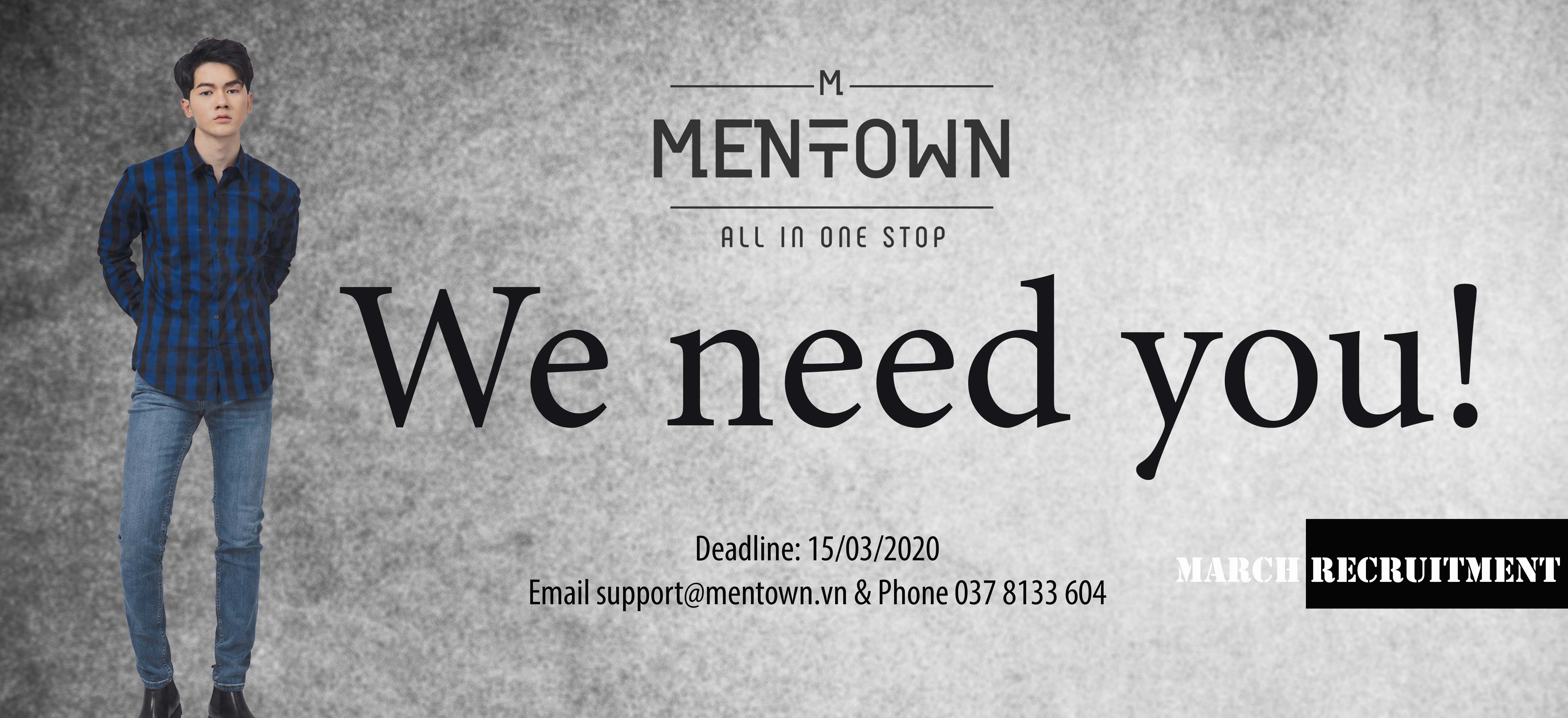 Nhằm mục tiêu phát triển hệ thống bán hàng tiến tới mở thêm store trong 3 tháng tới, Mentown tiến hành tuyển dụng đợt T3/2020